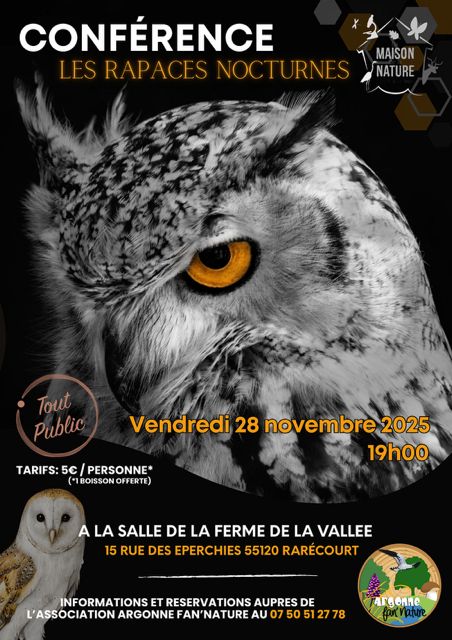 CONFERENCE: LES RAPACES NOCTURNES LE 28/11/2025