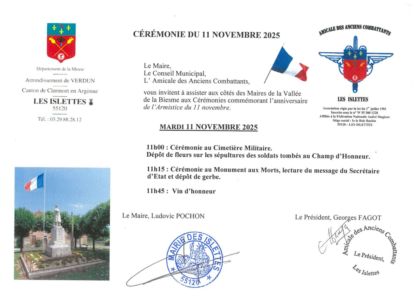 INVITATION CEREMONIE DU 11 NOVEMBRE 2025 AUX ISLETTES