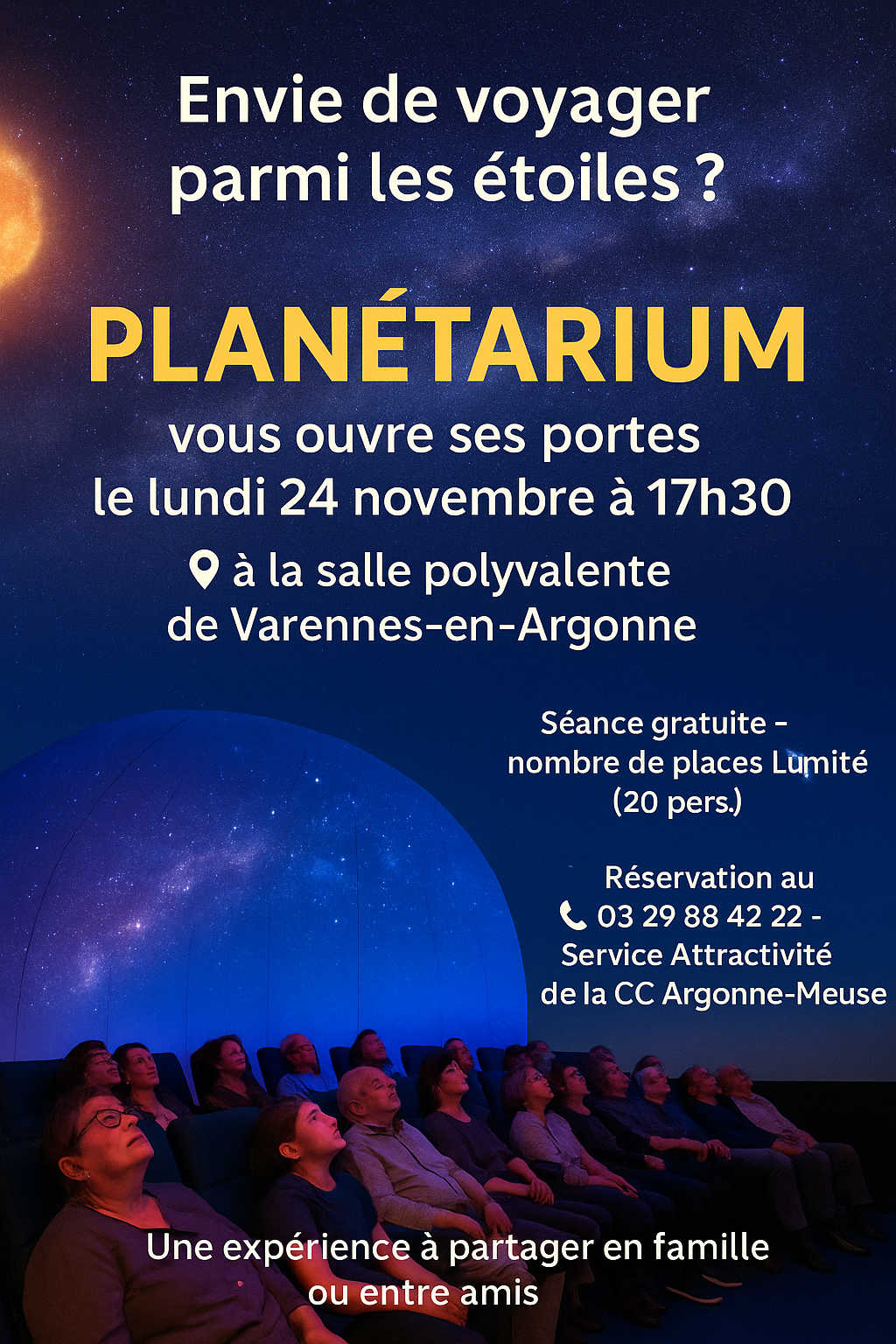 SEANCE EXCEPTIONNELLE DU PLANETARIUM LE 24/11/2025 A 17H30 A VARENNES EN ARGONNE