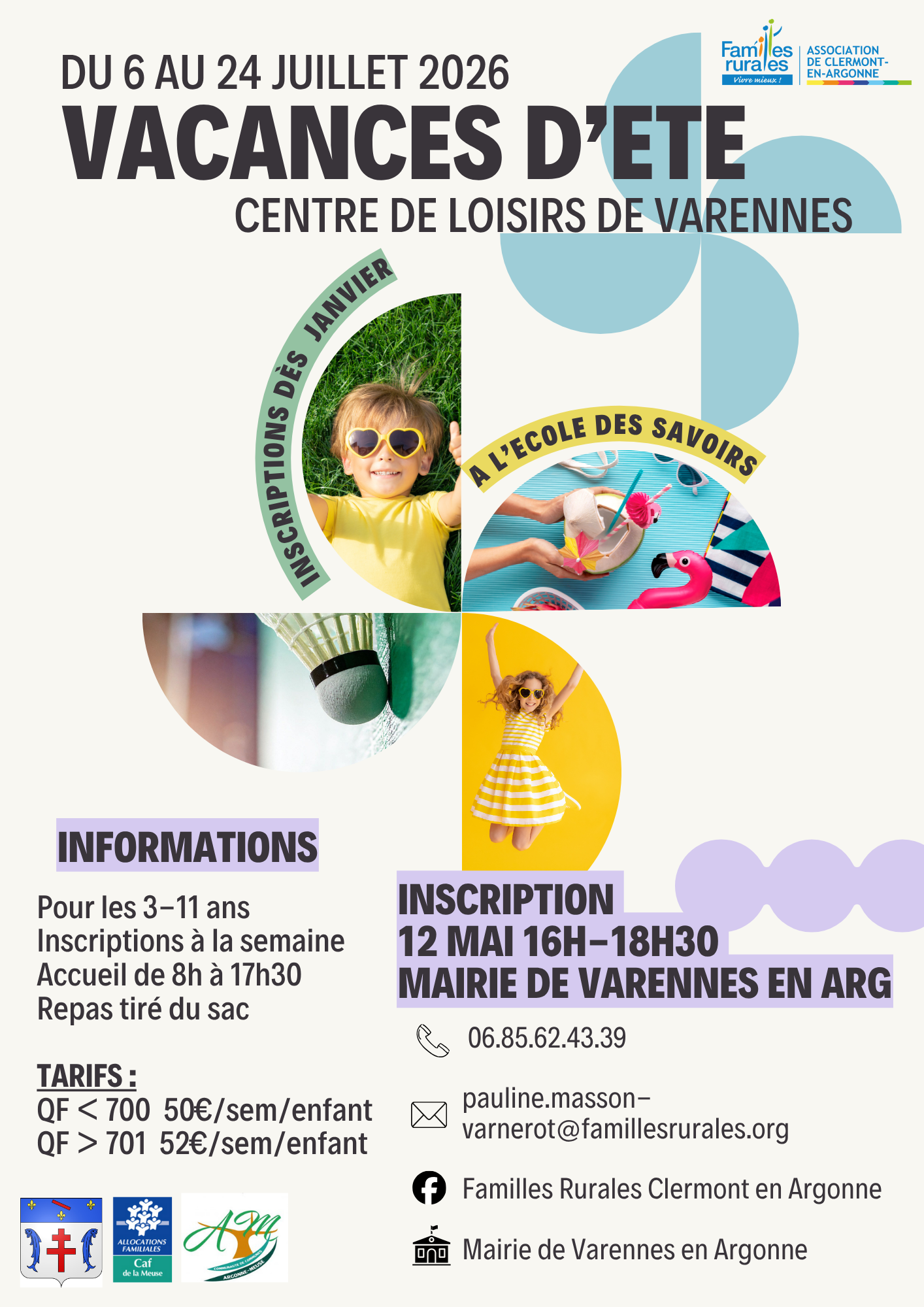 ACCUEIL LOISIRS ESTIVAL A VARENNES EN ARGONNE DU 6 AU 24 JUILLET 2026