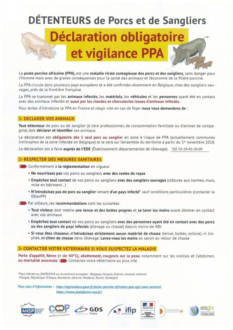 peste porcine africaine-recensement des porcs et des sangliers d'élevage- déclaration obligatoire